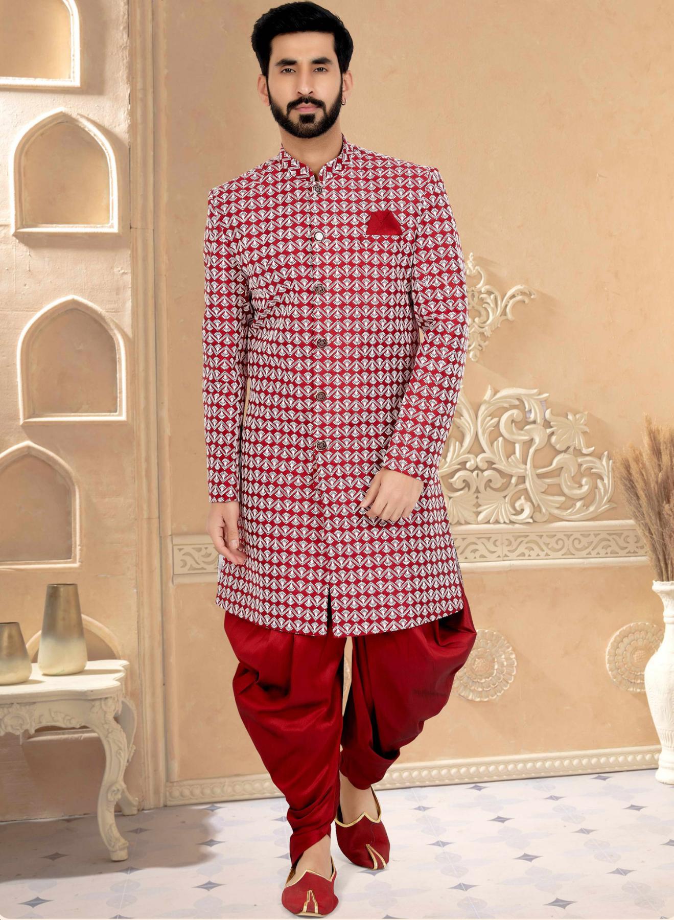 Buy Ravishing Silk Fire Brick Indo Western online.