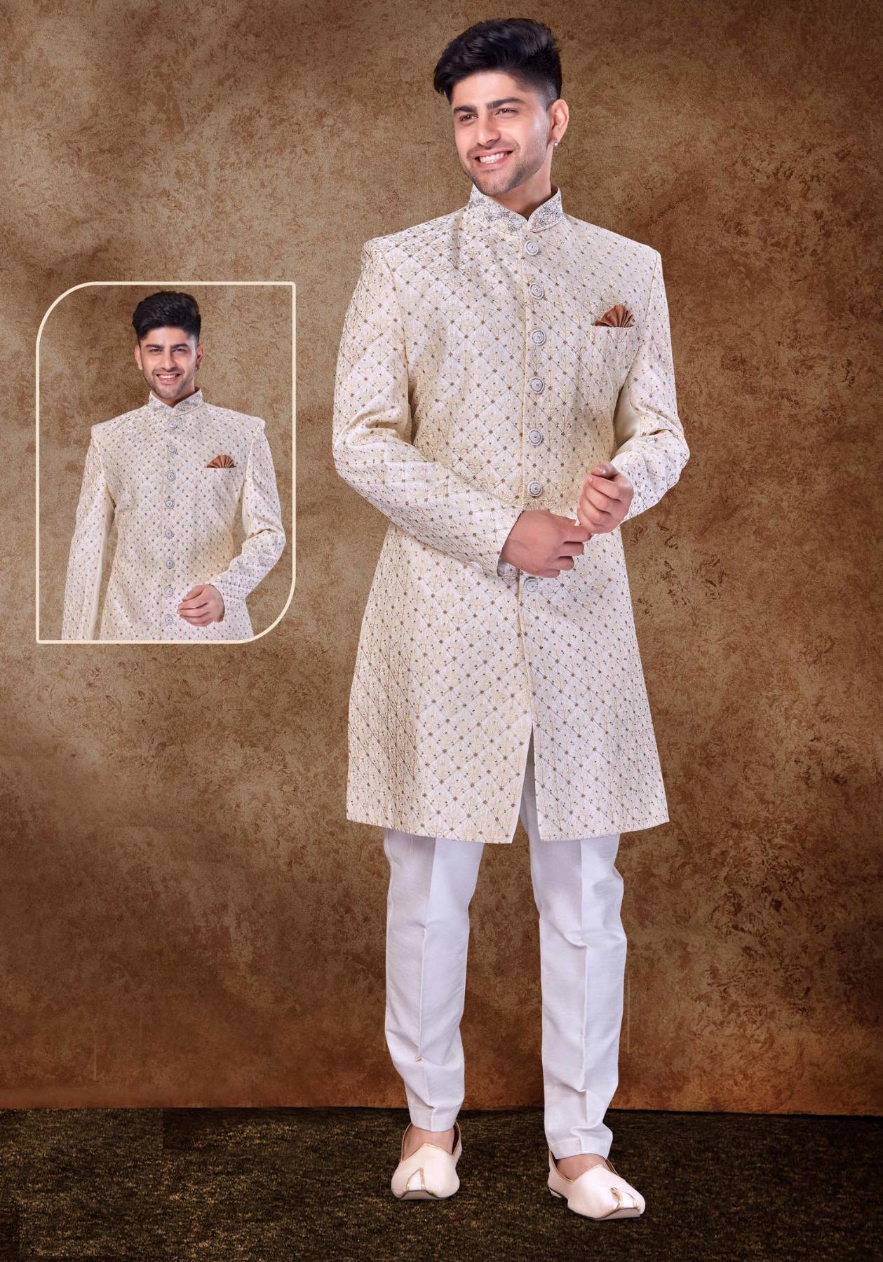 Picture of Ravishing Silk Thistle Sherwani Picture of Ravishing Silk Thistle Sherwani