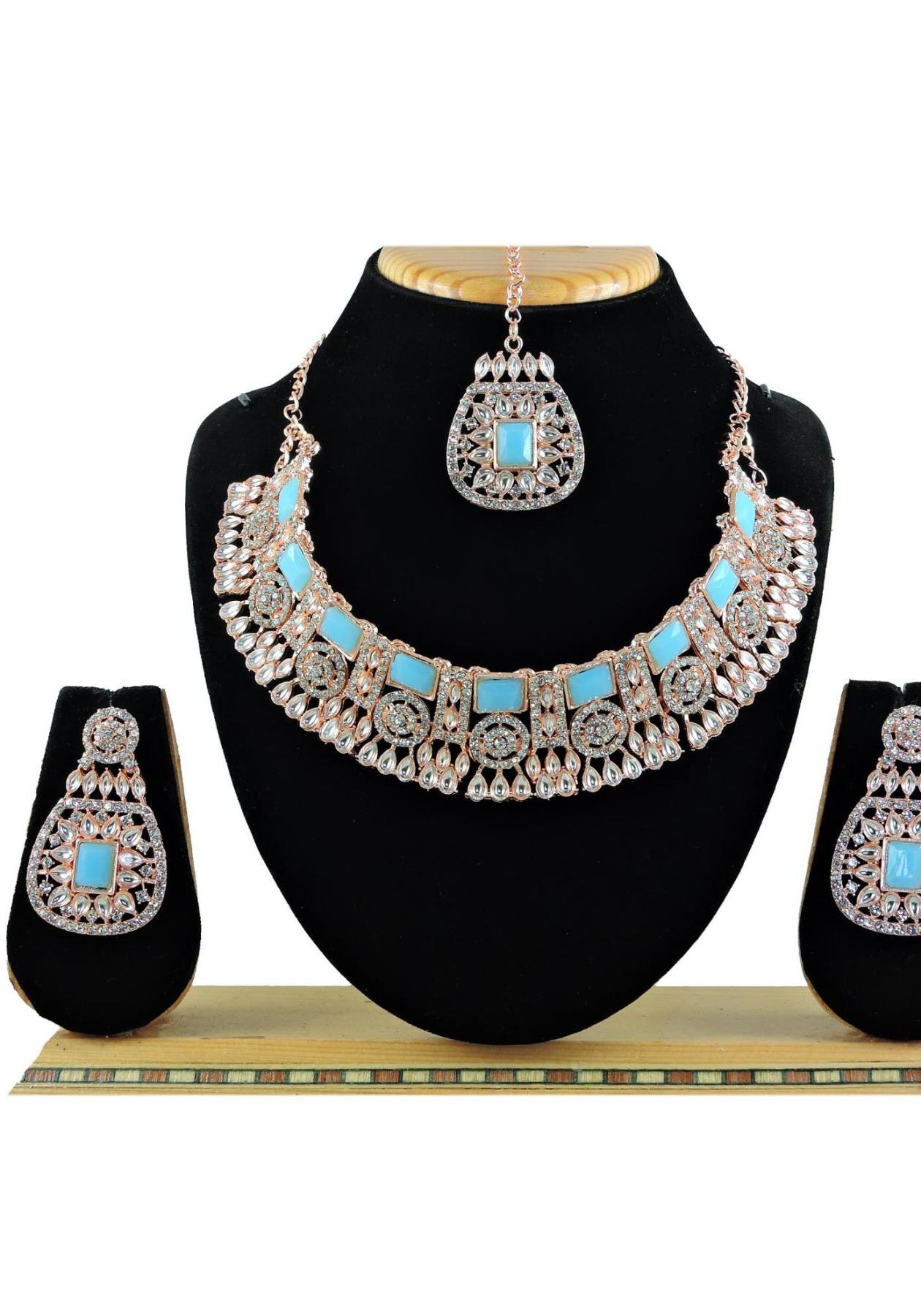 Buy Resplendent Chiffon Medium Turquoise Necklace Set online.