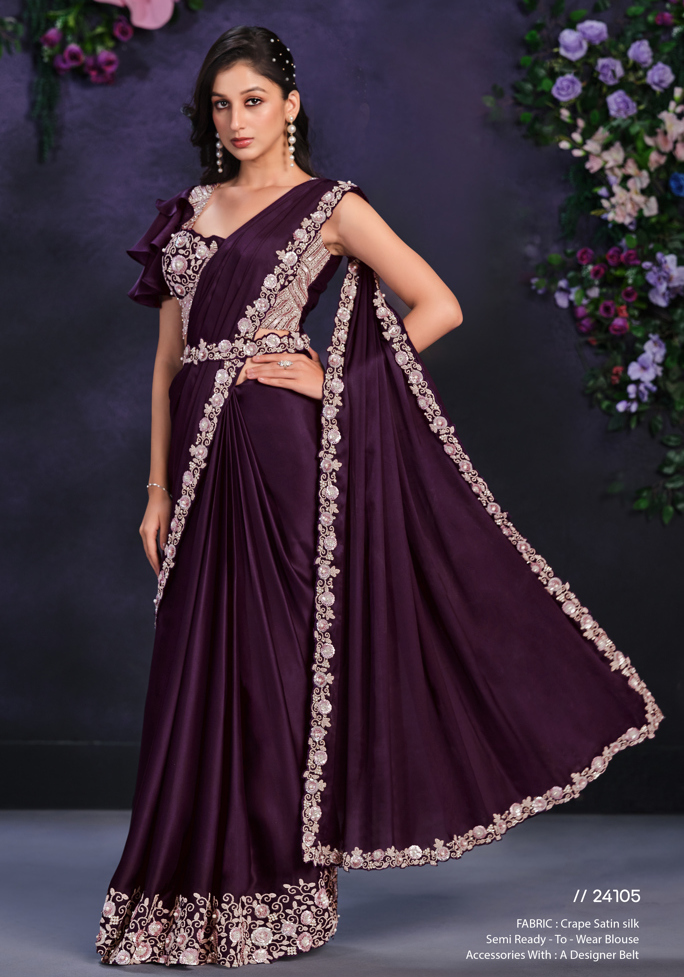Buy Resplendent Crepe & Satin & Silk Purple Saree online.
