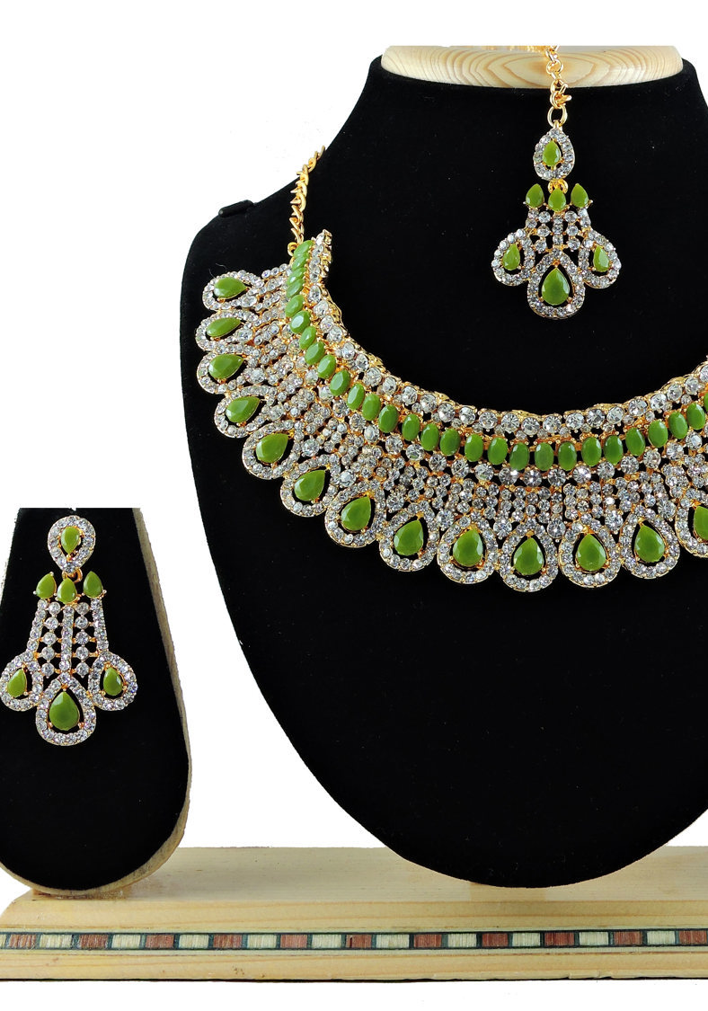 Details: 1 Necklace Set, 2 Earrings, 1 Mang Tikka.
