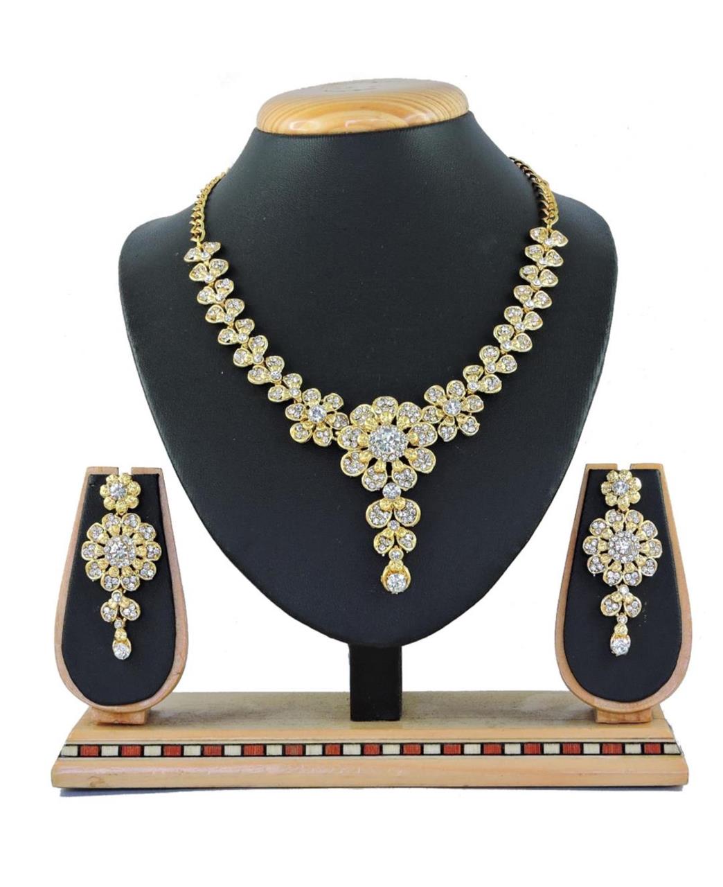 Buy Resplendent Gold & White Necklace Set Jewellery Neckless For Women