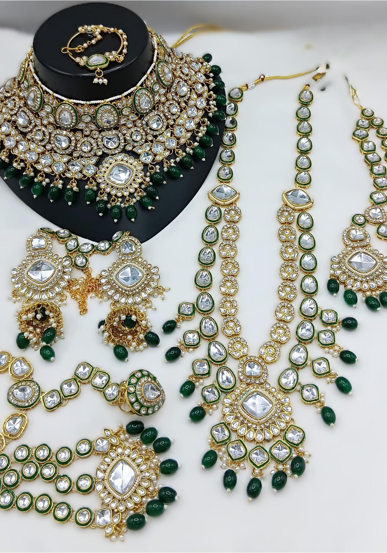 Details: 1 Chokar, 1 Long Necklace, 1 Pai Earrings, 1 Mathapatti ,1 Nath, 1 Pair hathpan,.