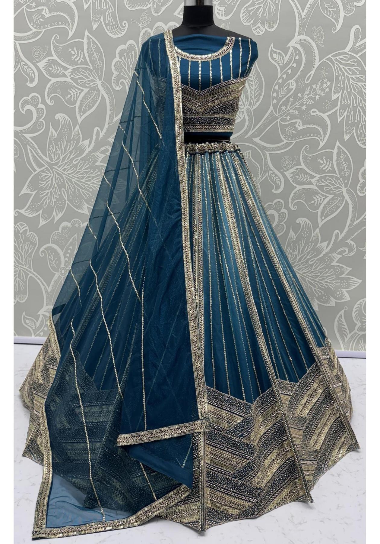 Buy Resplendent Net Midnight Blue Lehenga Choli online.