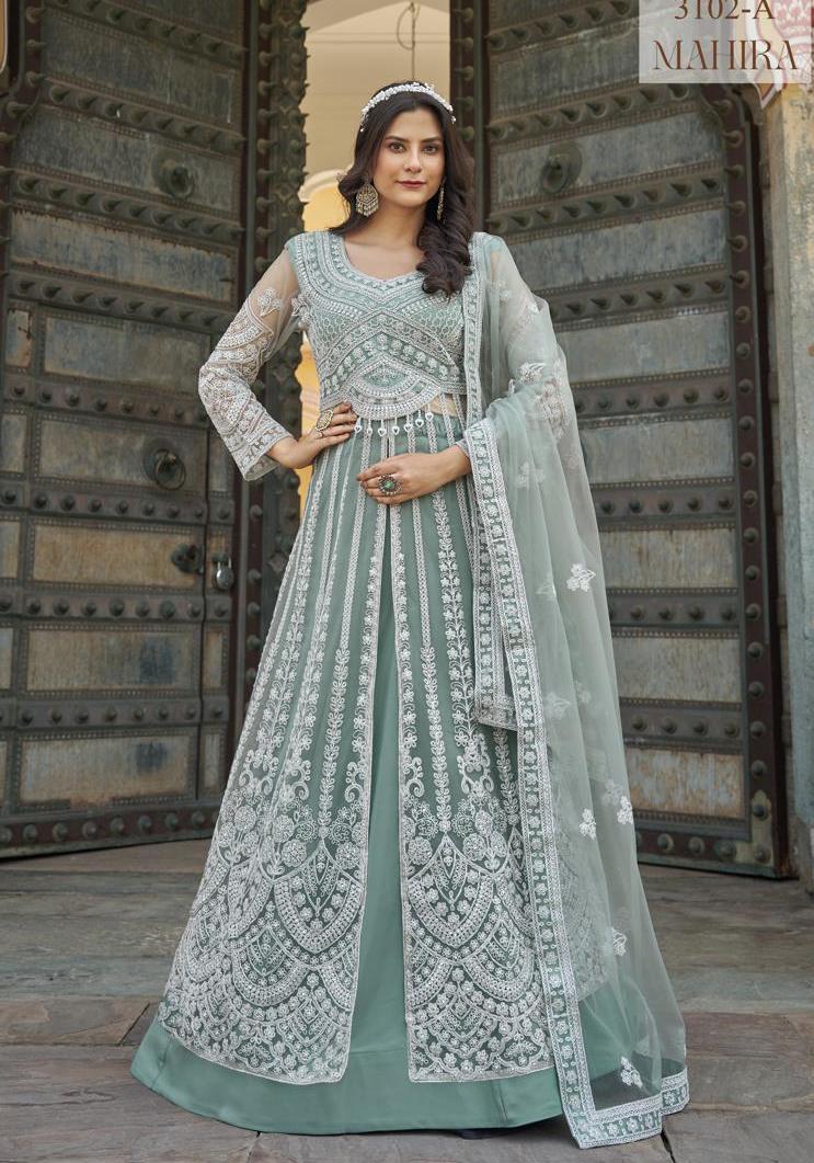 Buy Resplendent Net Slate Grey Anarkali Salwar Kameez online.