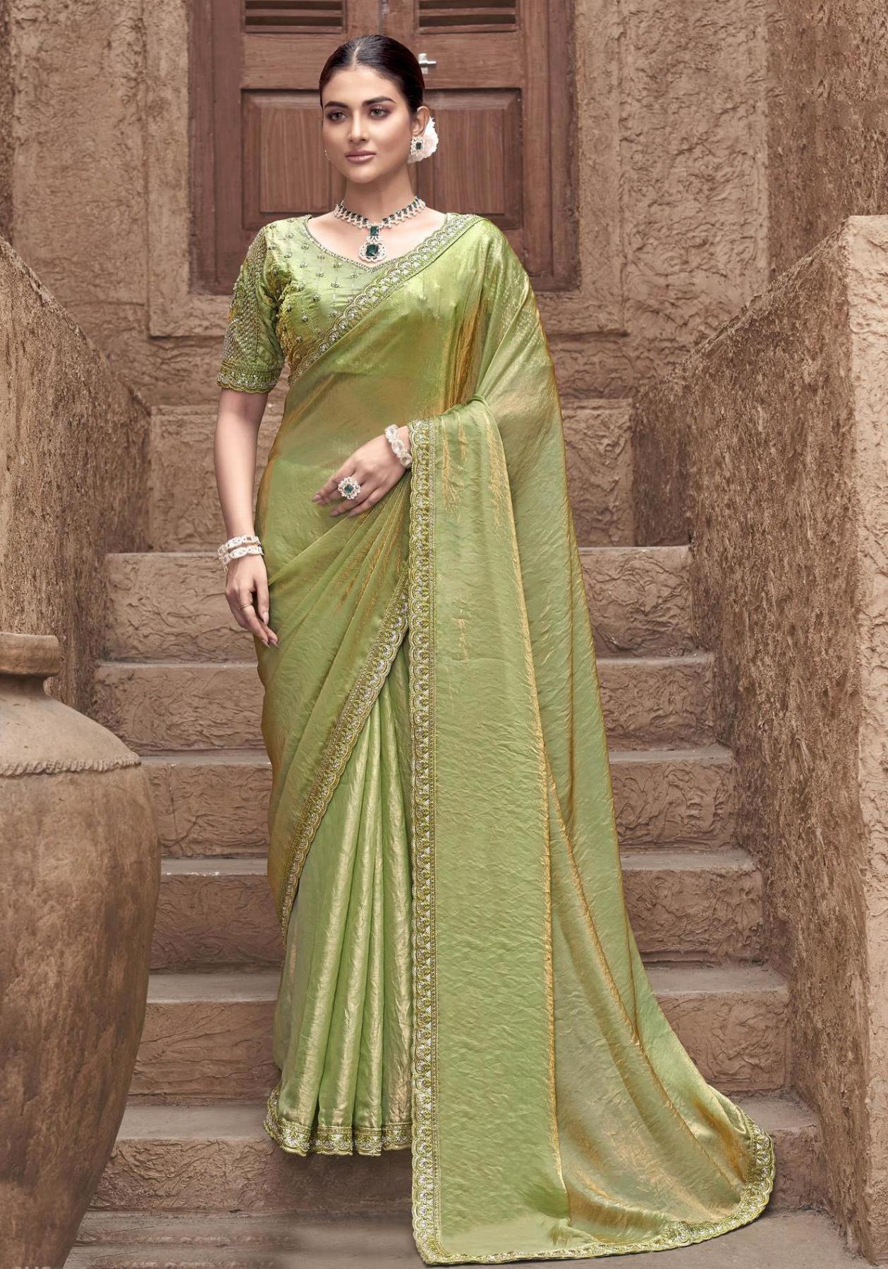 Buy Resplendent Satin & Silk Dark Khaki Saree online.