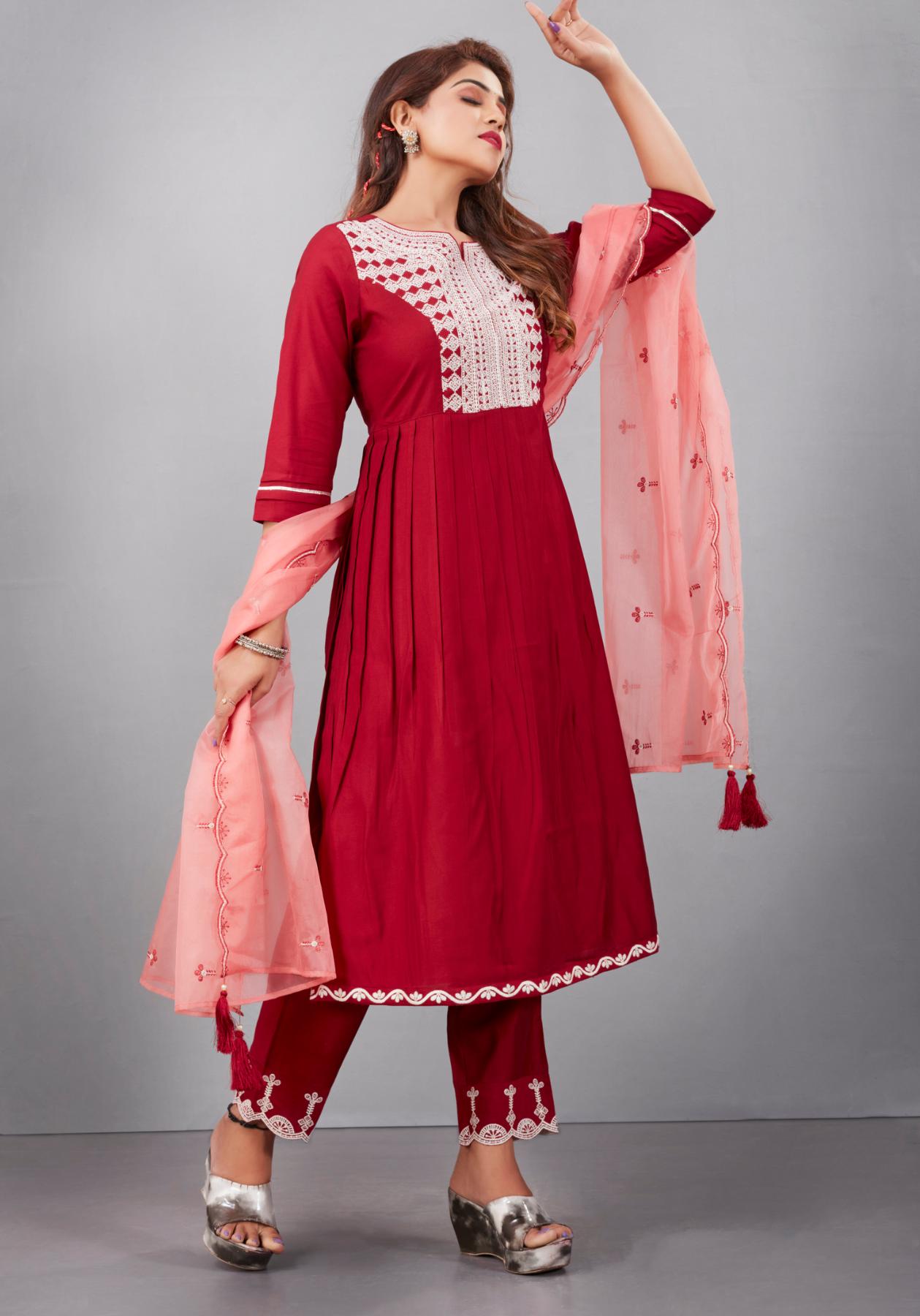 Buy Resplendent Silk Maroon Readymade Salwar Kameez online.