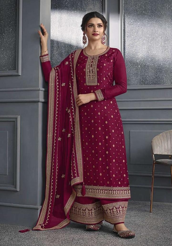 Buy Resplendent Silk Saddle Brown Straight Cut Salwar Kameez online.