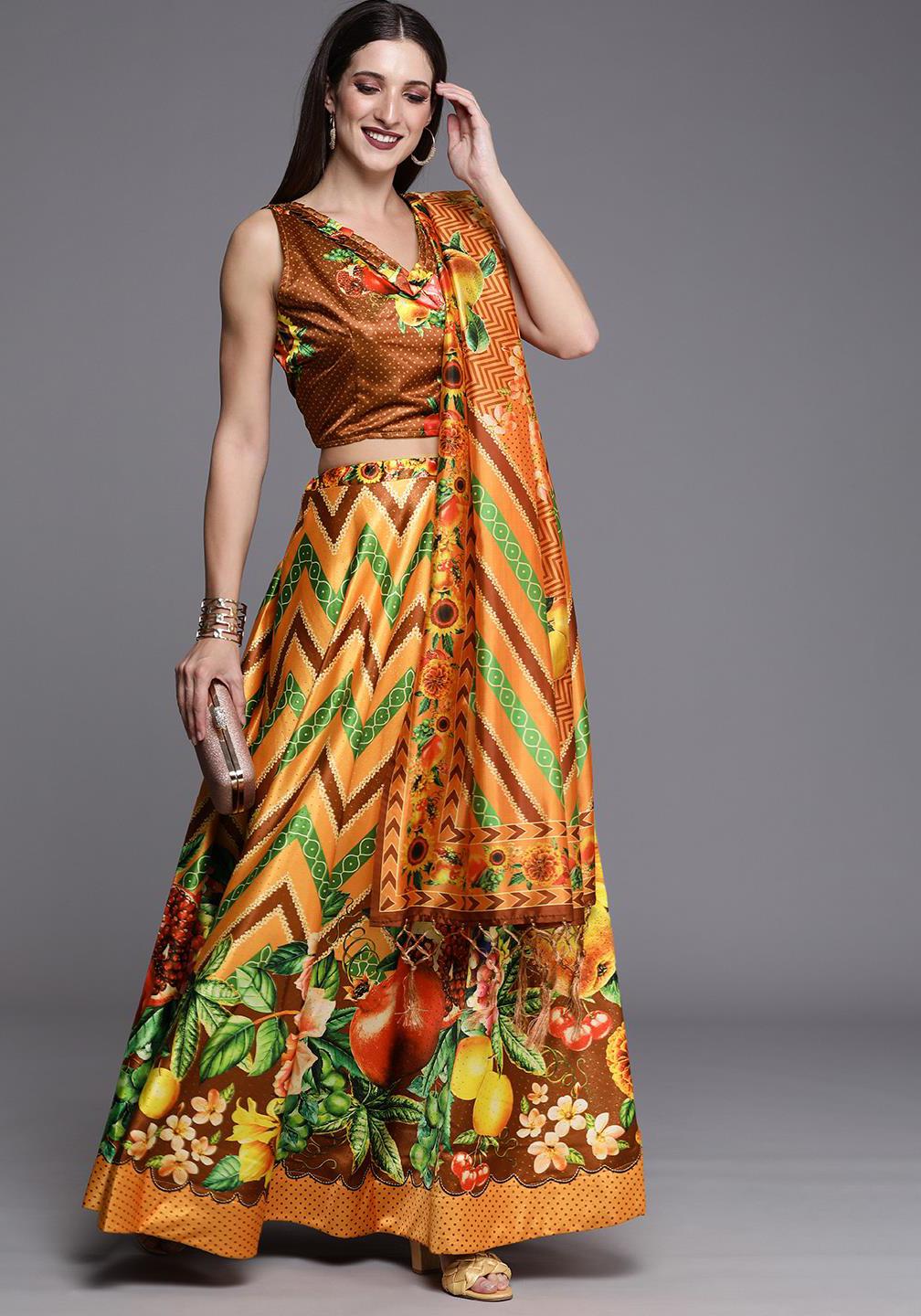 Buy Resplendent Silk Sandy Brown Lehenga Choli online.