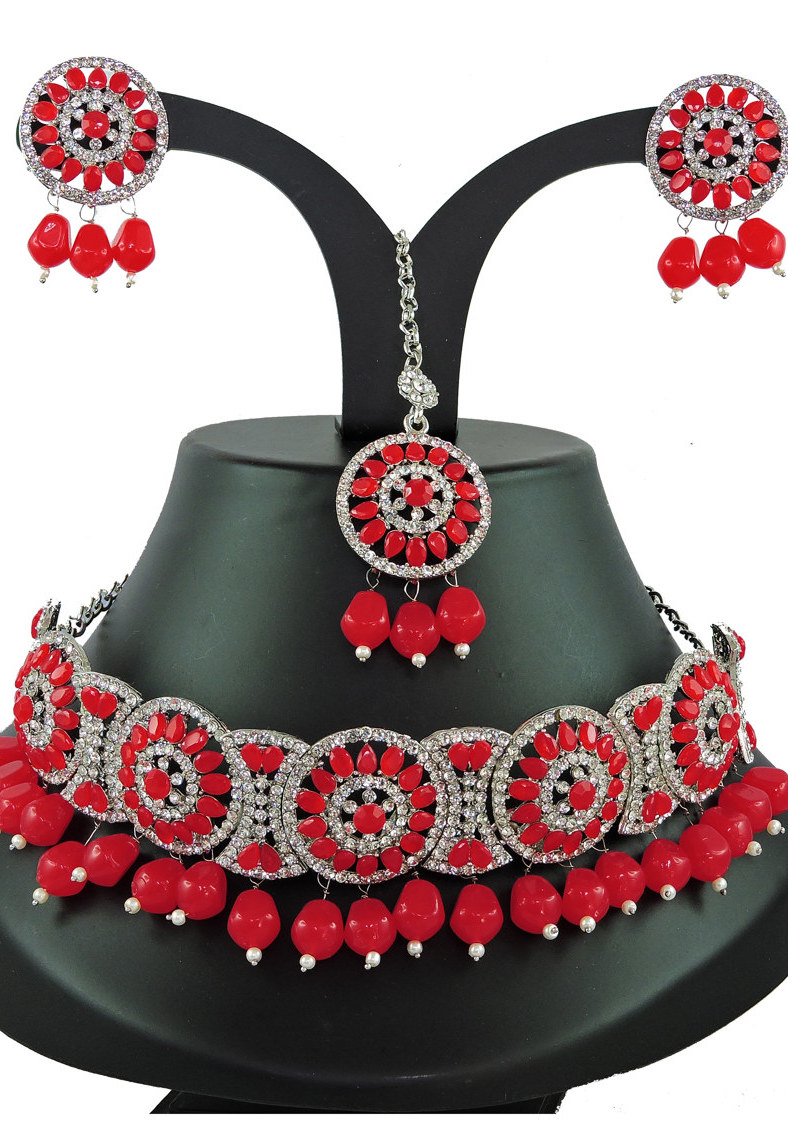 Details: 1 Necklace Set, 2 Earrings, 1 Mang Tikka.