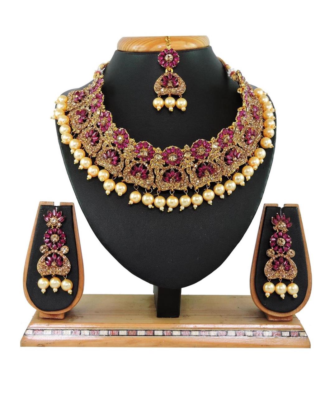 Buy Shapely Rani Pink Necklace Set Jewellery Neckless For Women