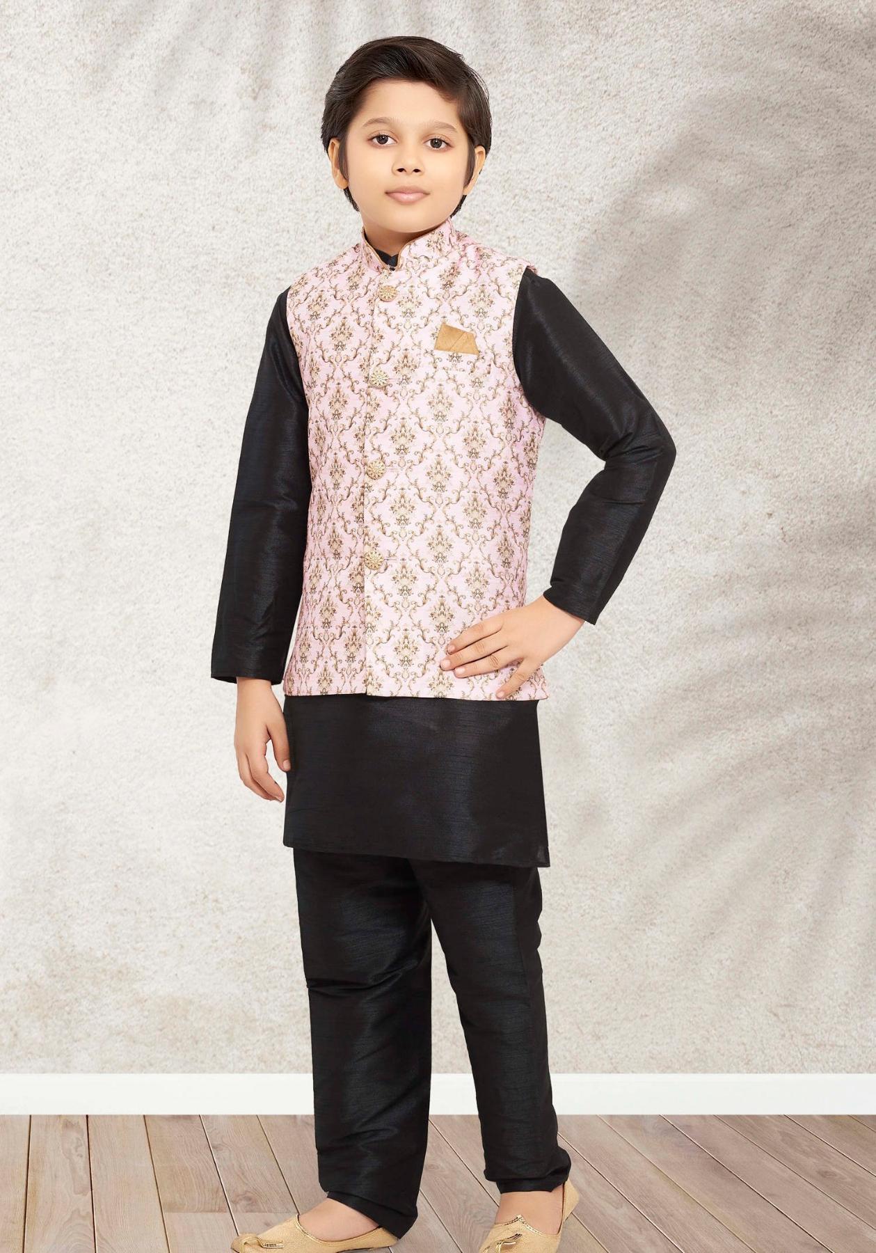 Picture of Shapely Silk Black Kids Kurta Pyjama Picture of Shapely Silk Black Kids Kurta Pyjama Picture of Shapely Silk Black Kids Kurta Pyjama