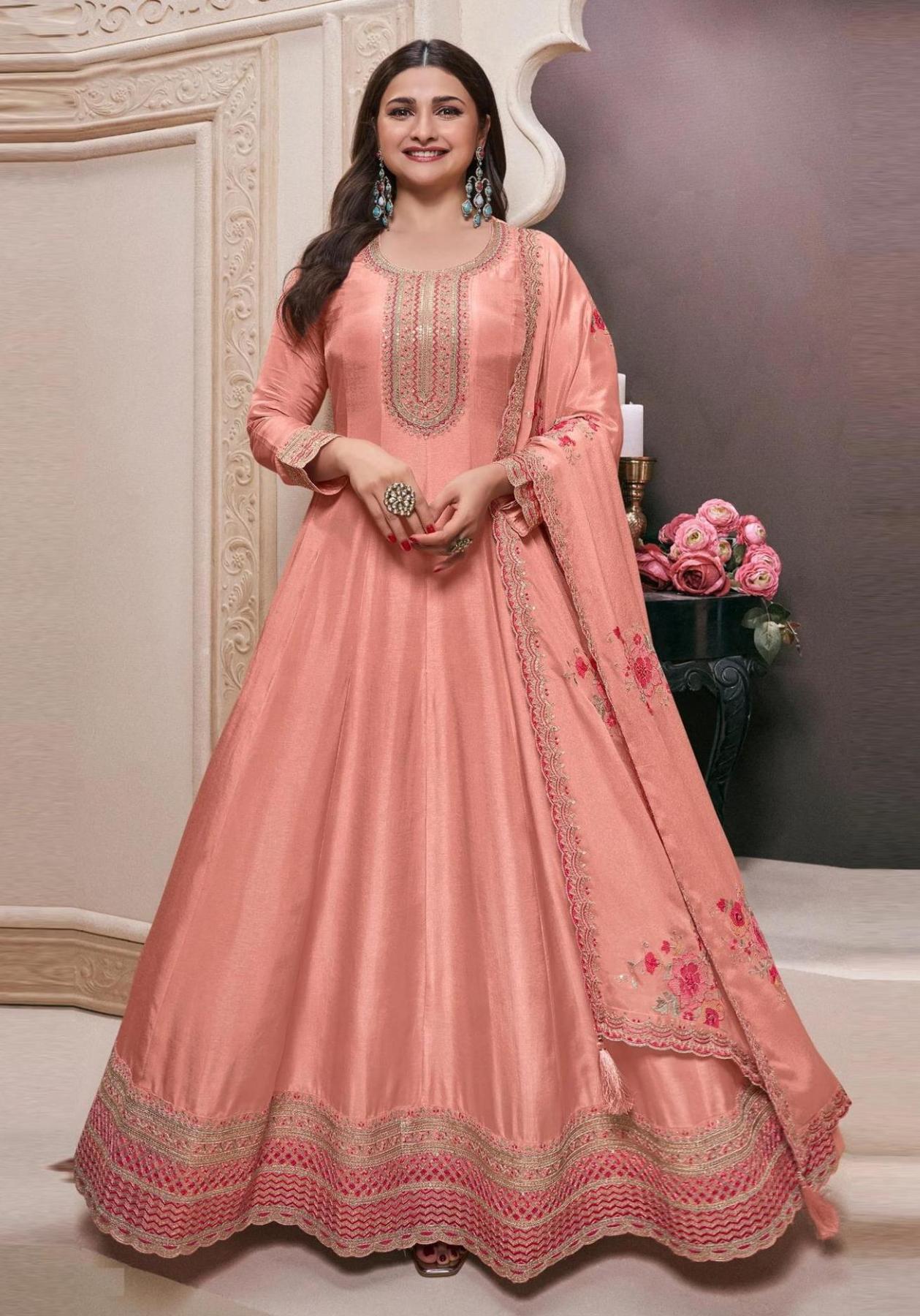 Buy Shapely Silk Coral Anarkali Salwar Kameez online.