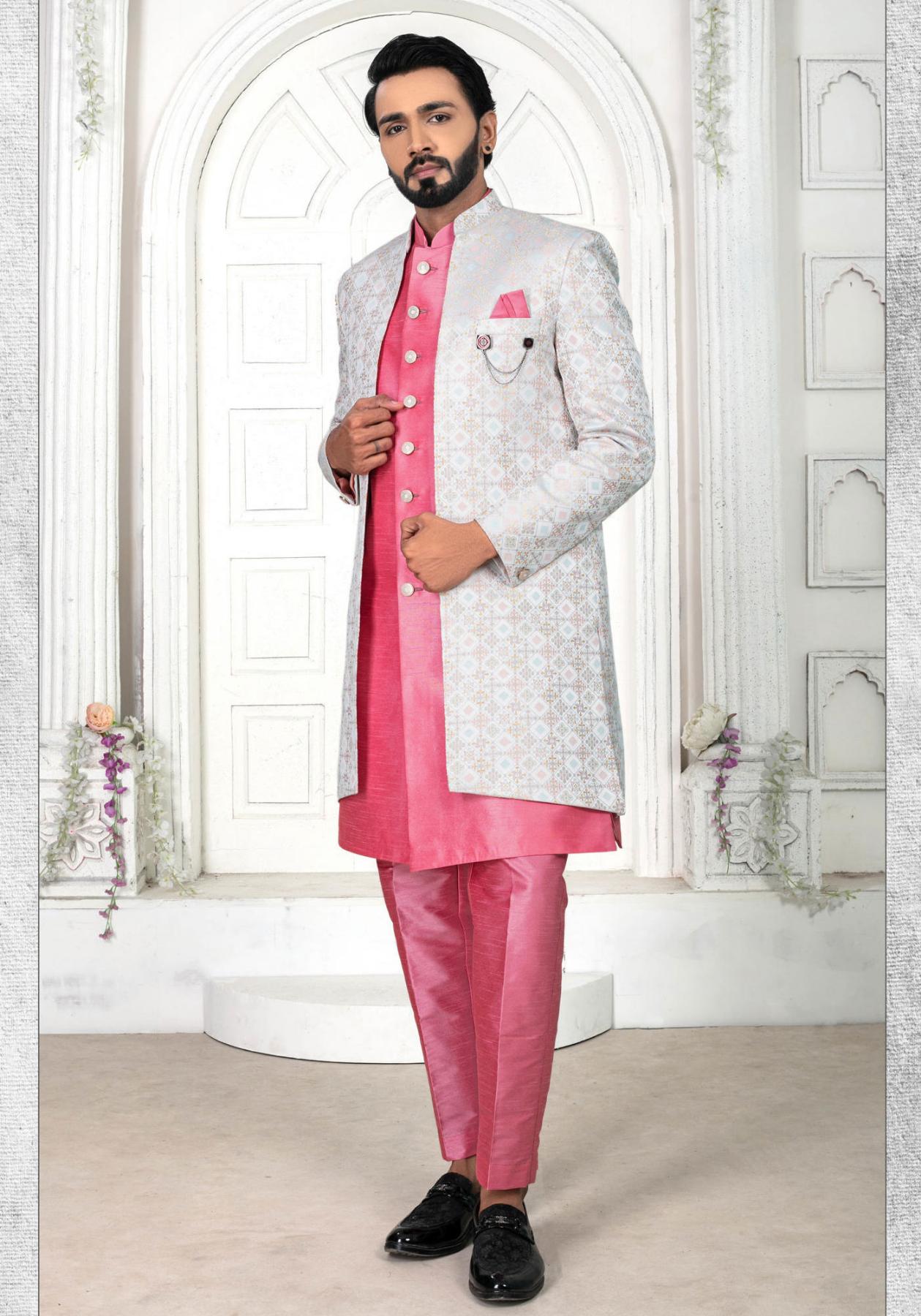 Picture of Shapely Silk Light Coral Indo Western Picture of Shapely Silk Light Coral Indo Western