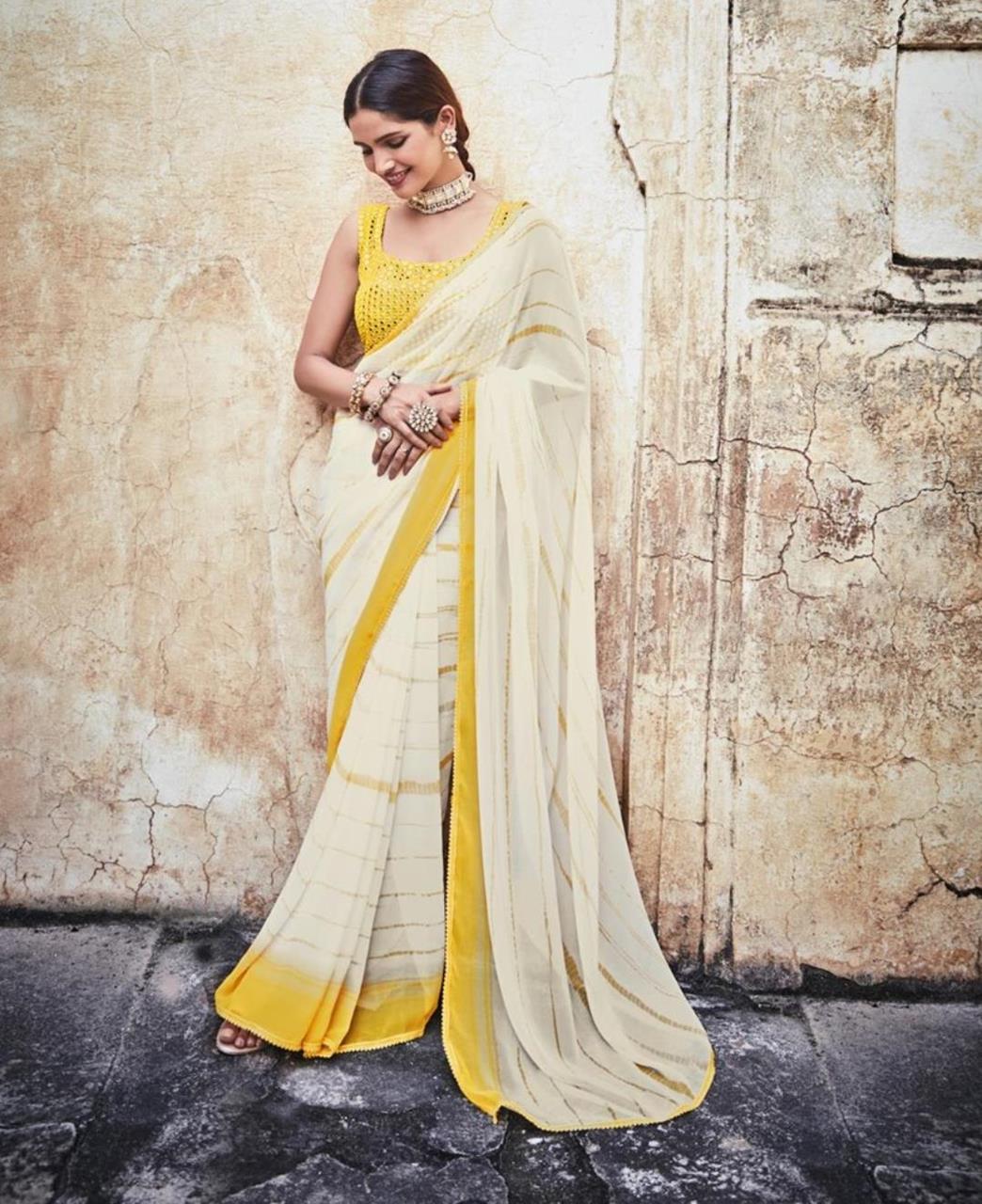 In Pre-stitched saree you will get the saree with stitched plates, belt on the waist and adjustable hooks. So you can wear the saree like a skirt