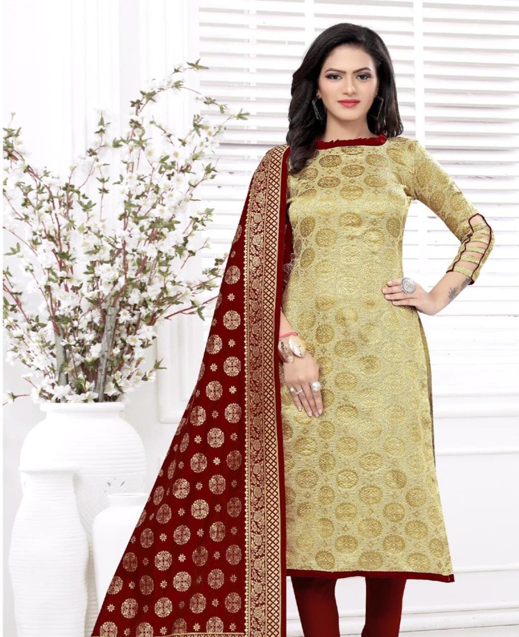 Salwar Kameez is Designed With Weaving With Jacquard Work Work.