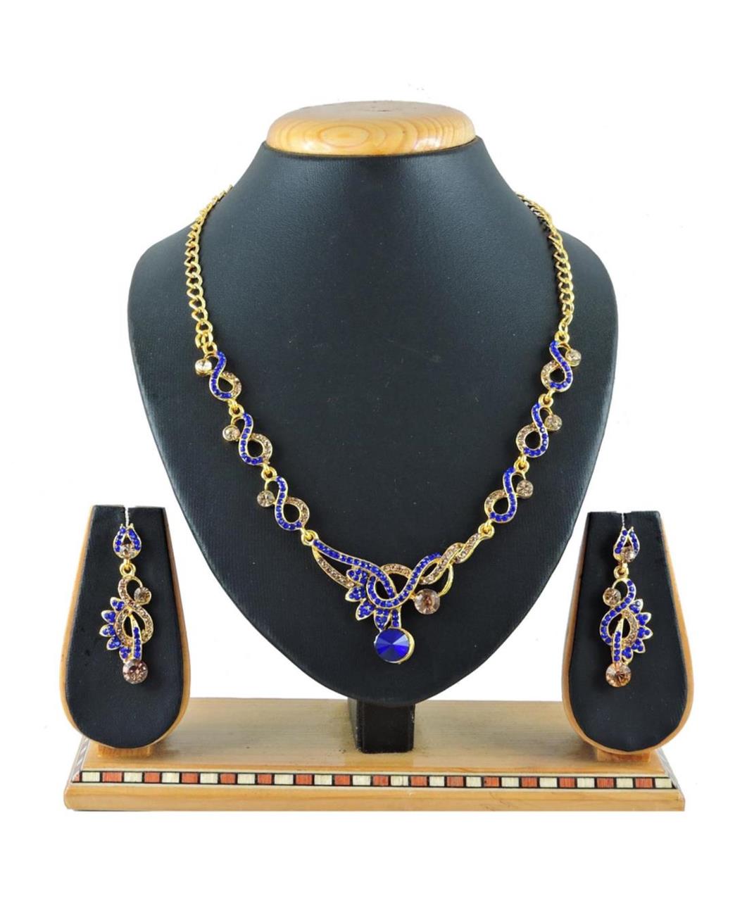 Buy Sightly Blue & Gold Necklace Set Jewellery Neckless For Women