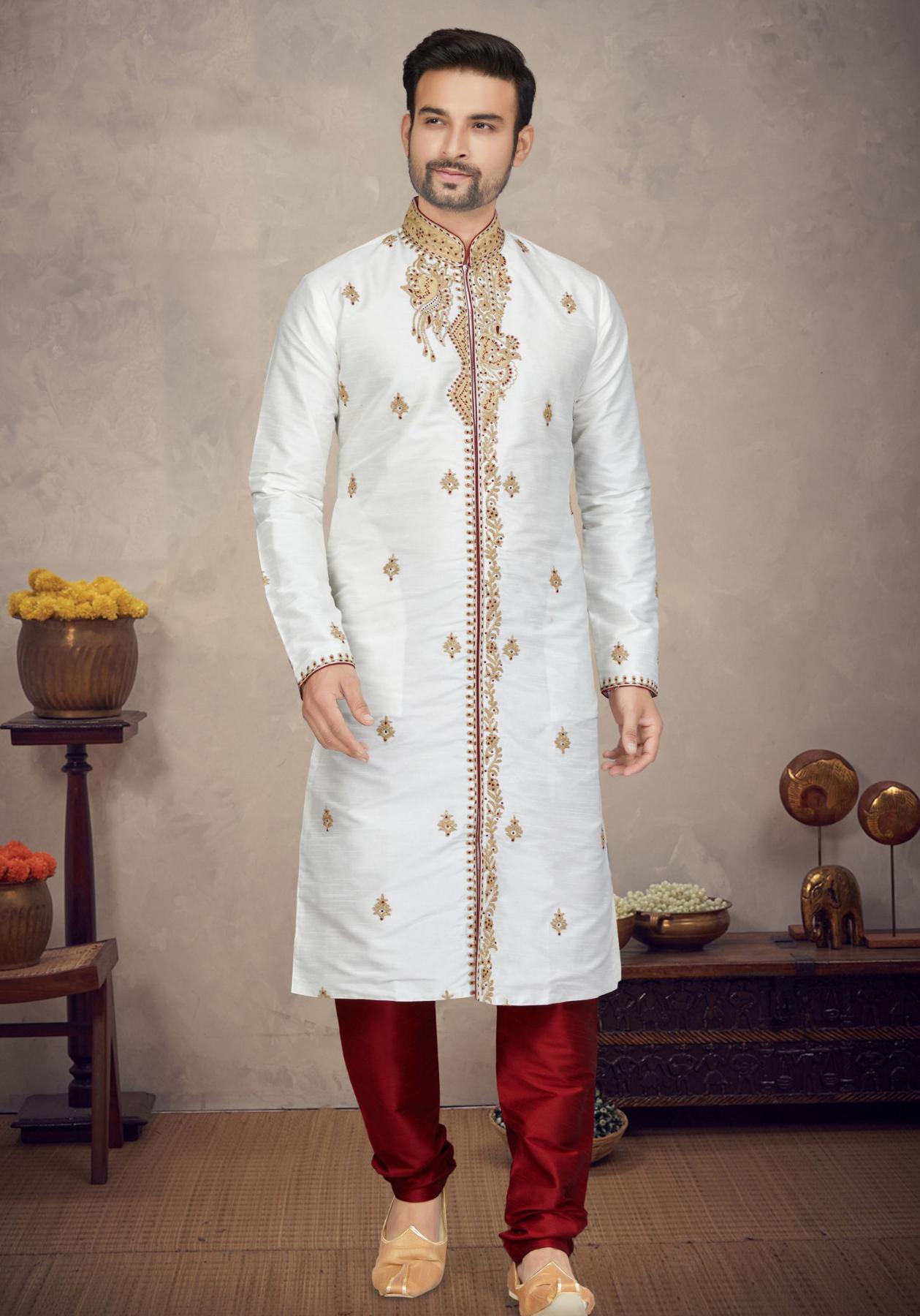 Picture of Sightly Cotton & Silk Off White Kurtas