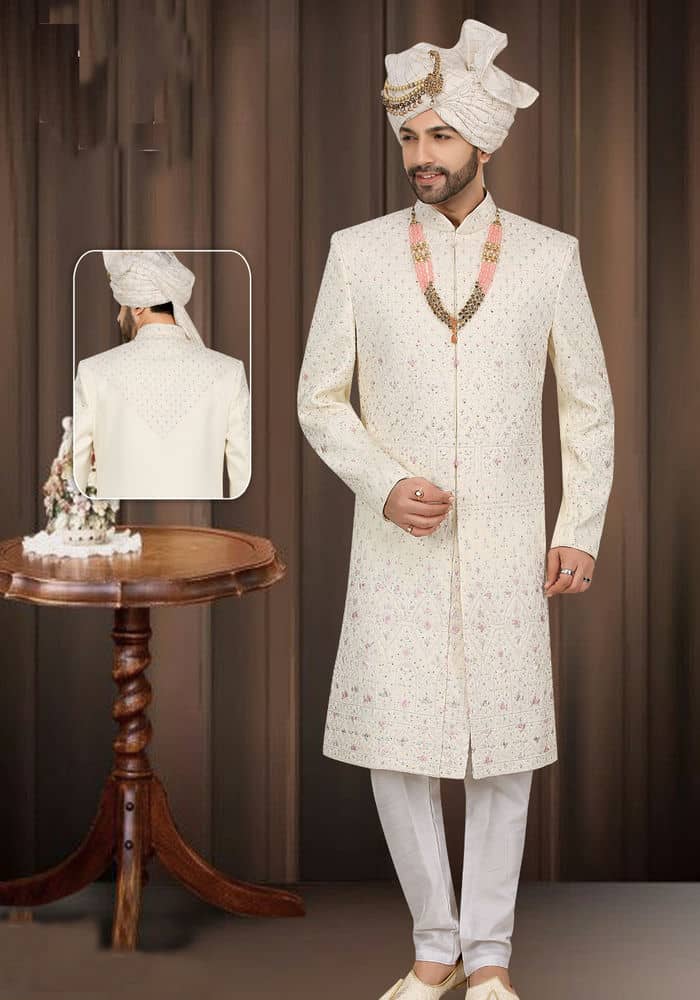 Picture of Sightly Georgette Off White Sherwani Picture of Sightly Georgette Off White Sherwani