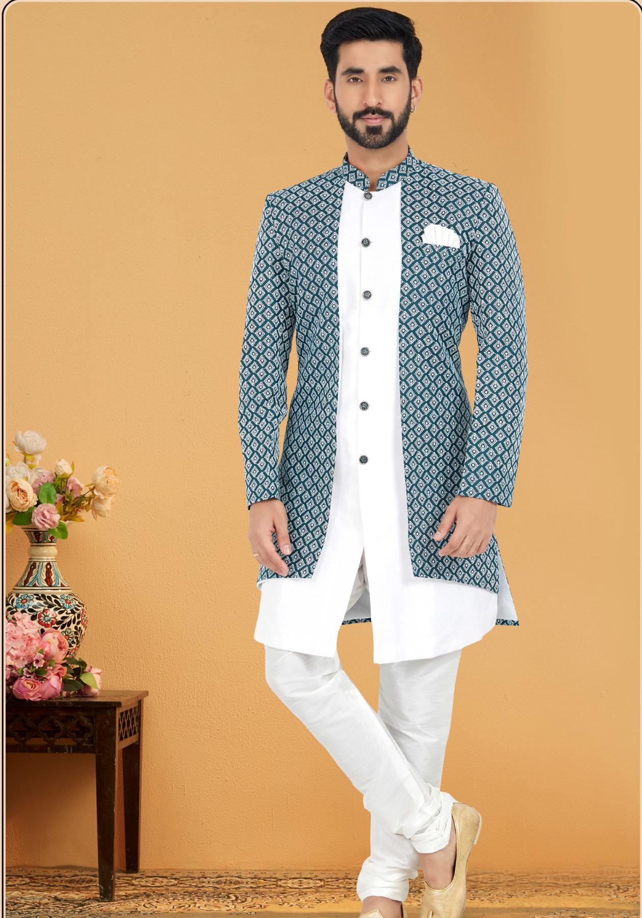 Picture of Sightly Georgette & Silk White Indo Western Picture of Sightly Georgette & Silk White Indo Western Picture of Sightly Georgette & Silk White Indo Western