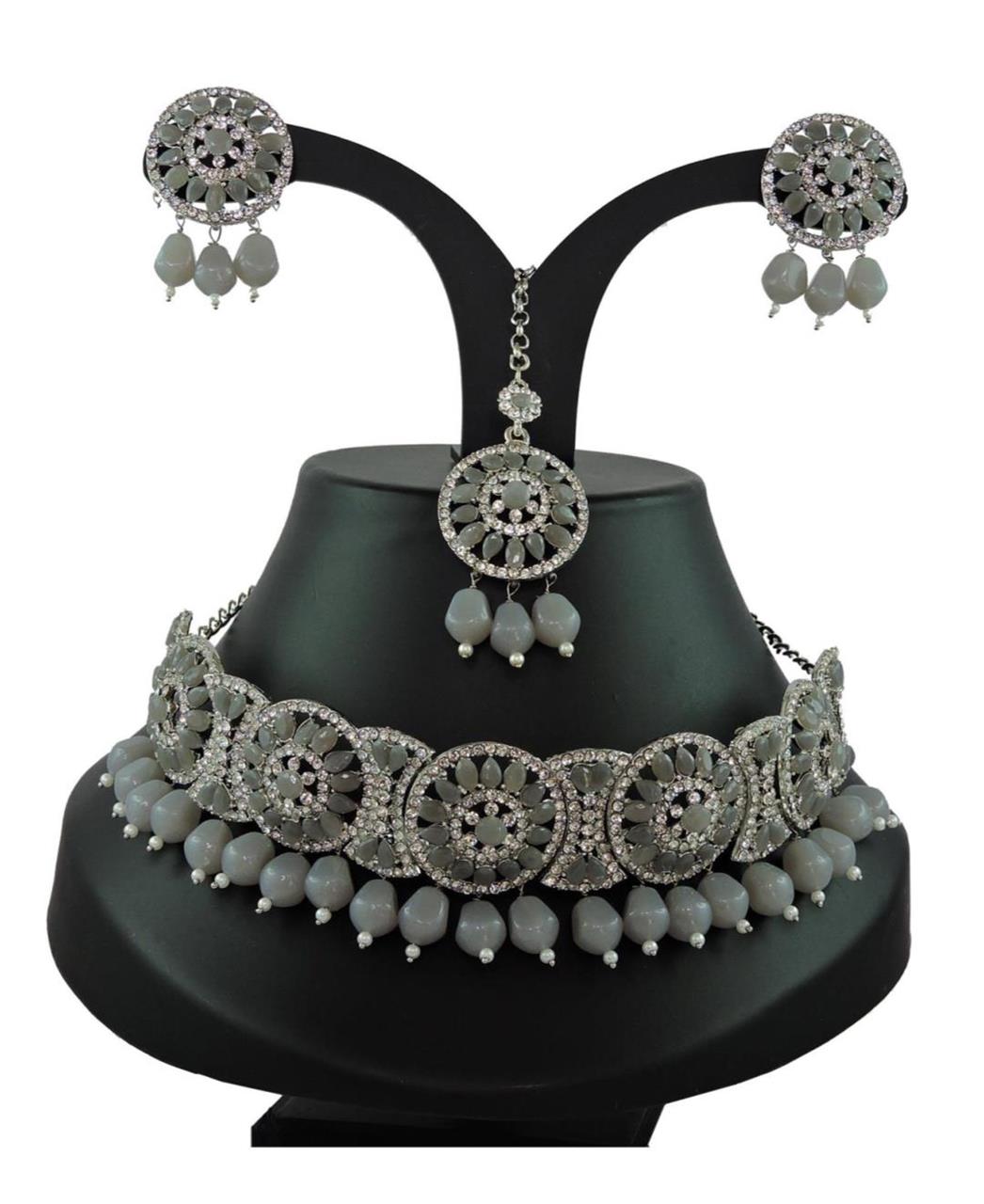 Buy Sightly Grey Necklace Set Jewellery Neckless For Women