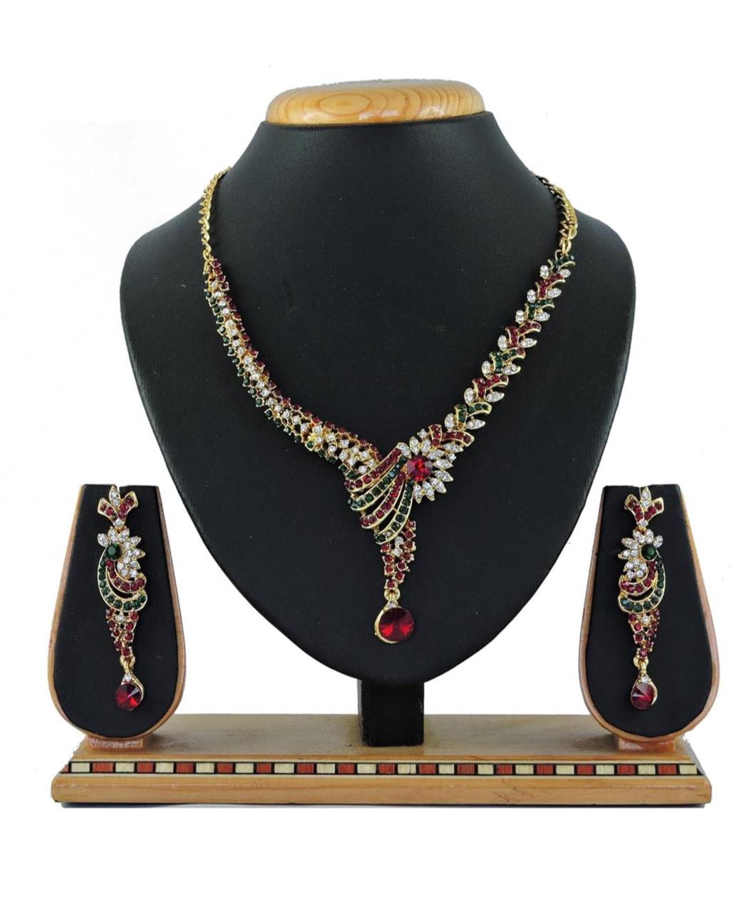 Buy Sightly Maroon & Green Necklace Set Jewellery Neckless For Women