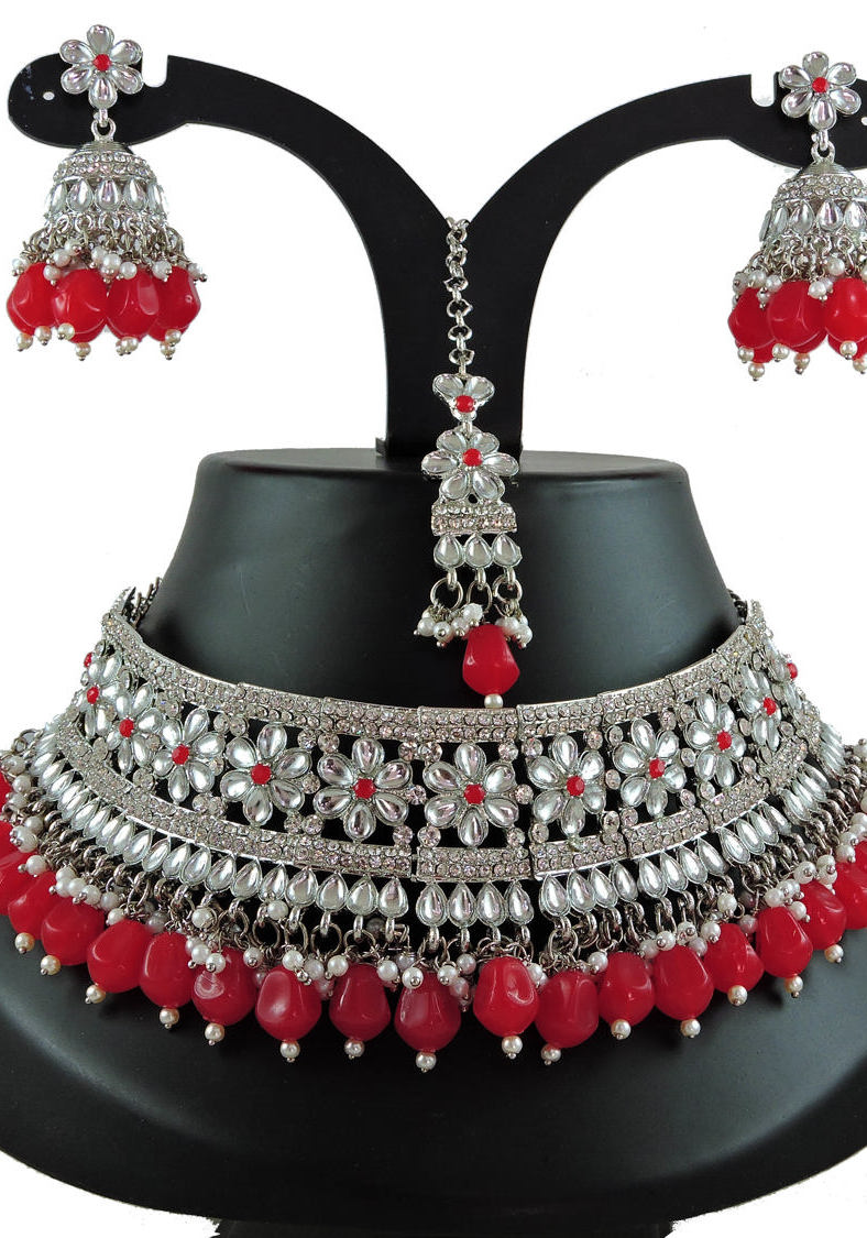 Details: 1 Necklace Set, 2 Earrings, 1 Mang Tikka.