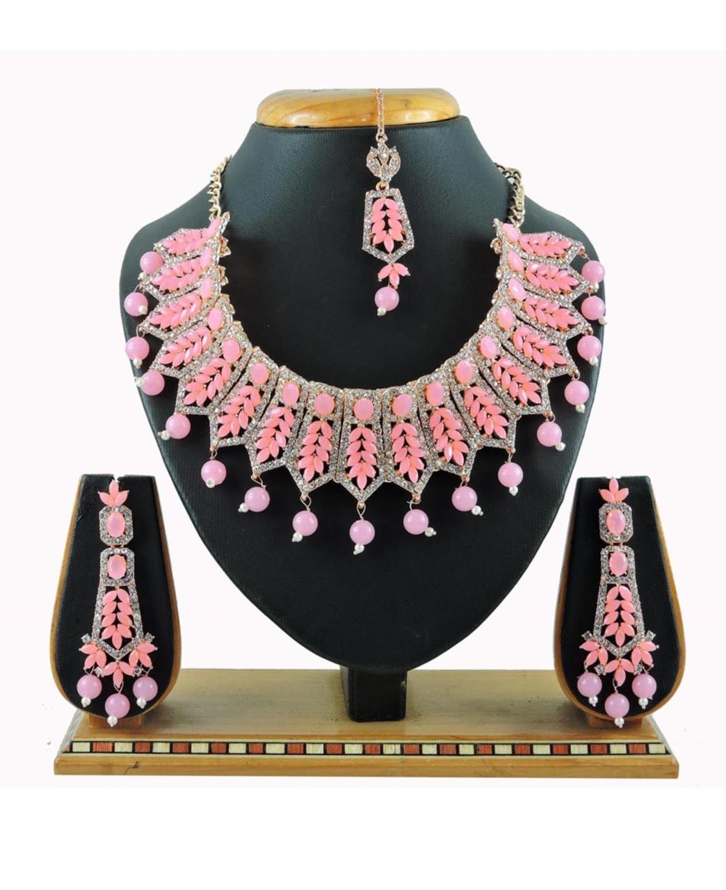 Buy Sightly Rose Pink Necklace Set Jewellery Neckless For Women