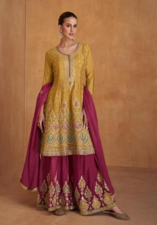 Buy Silk Dark Golden Rod Straight Cut Salwar Kameez online.