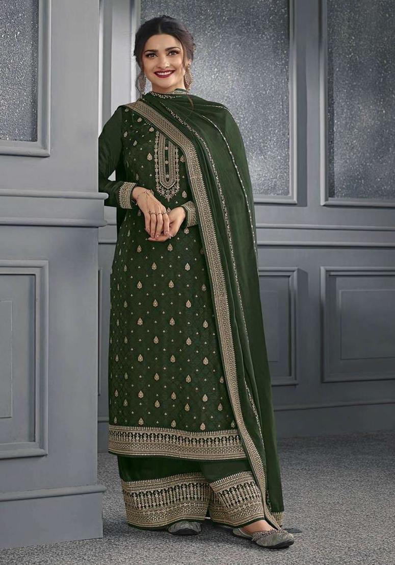 Silk Dark Olive Green Straight Cut Salwar Kameez