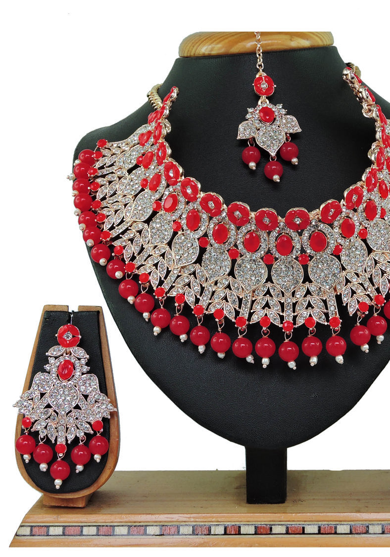 Buy Splendid Fire Brick Necklace Set online.