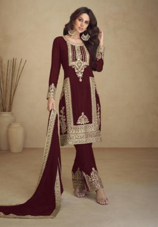Buy Splendid Georgette Maroon Straight Cut Salwar Kameez online.