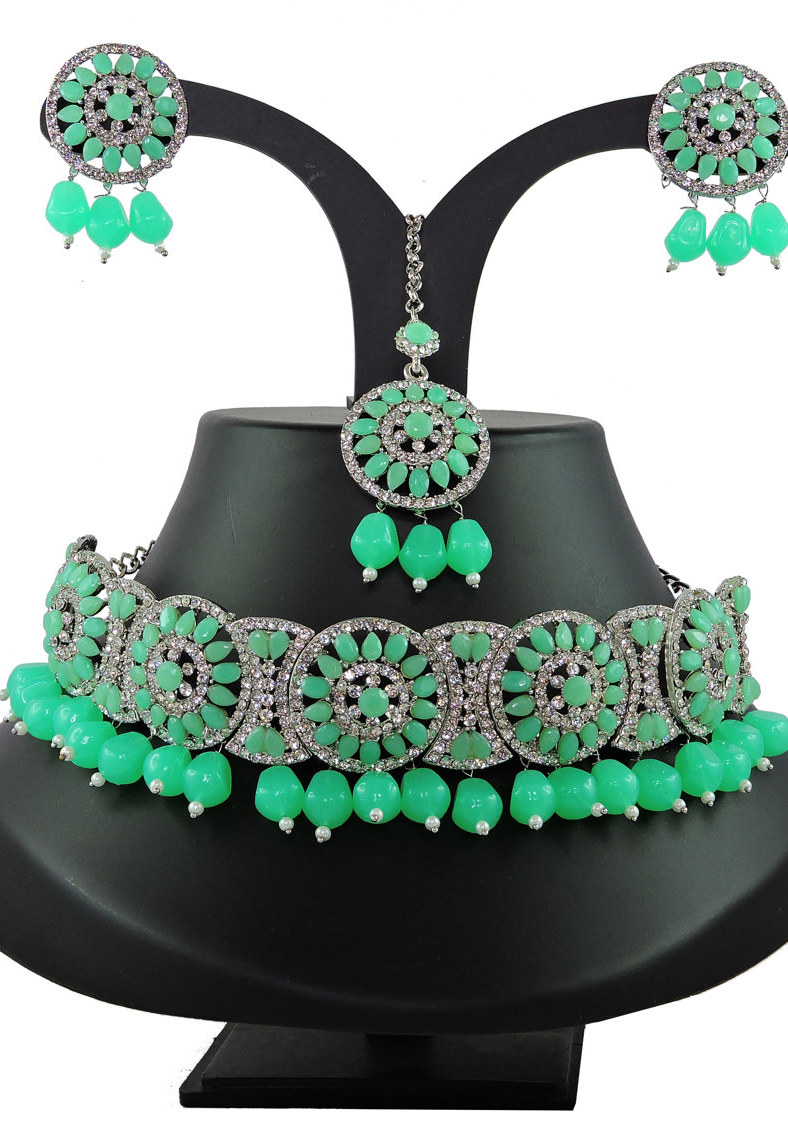 Details: 1 Necklace Set, 2 Earrings, 1 Mang Tikka.