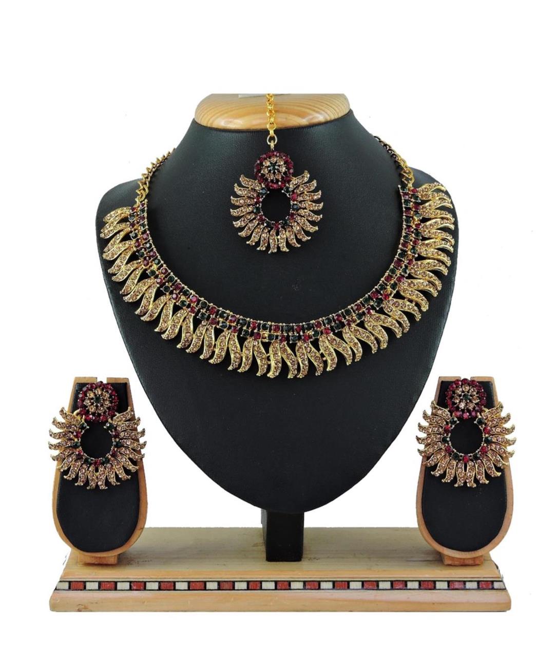 Buy Splendid Maroon & Green Necklace Set Jewellery Neckless For Women