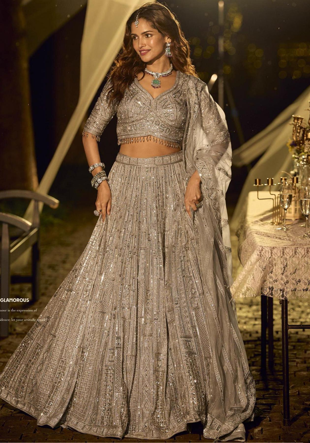 Buy Splendid Net Dark Grey Lehenga Choli online.