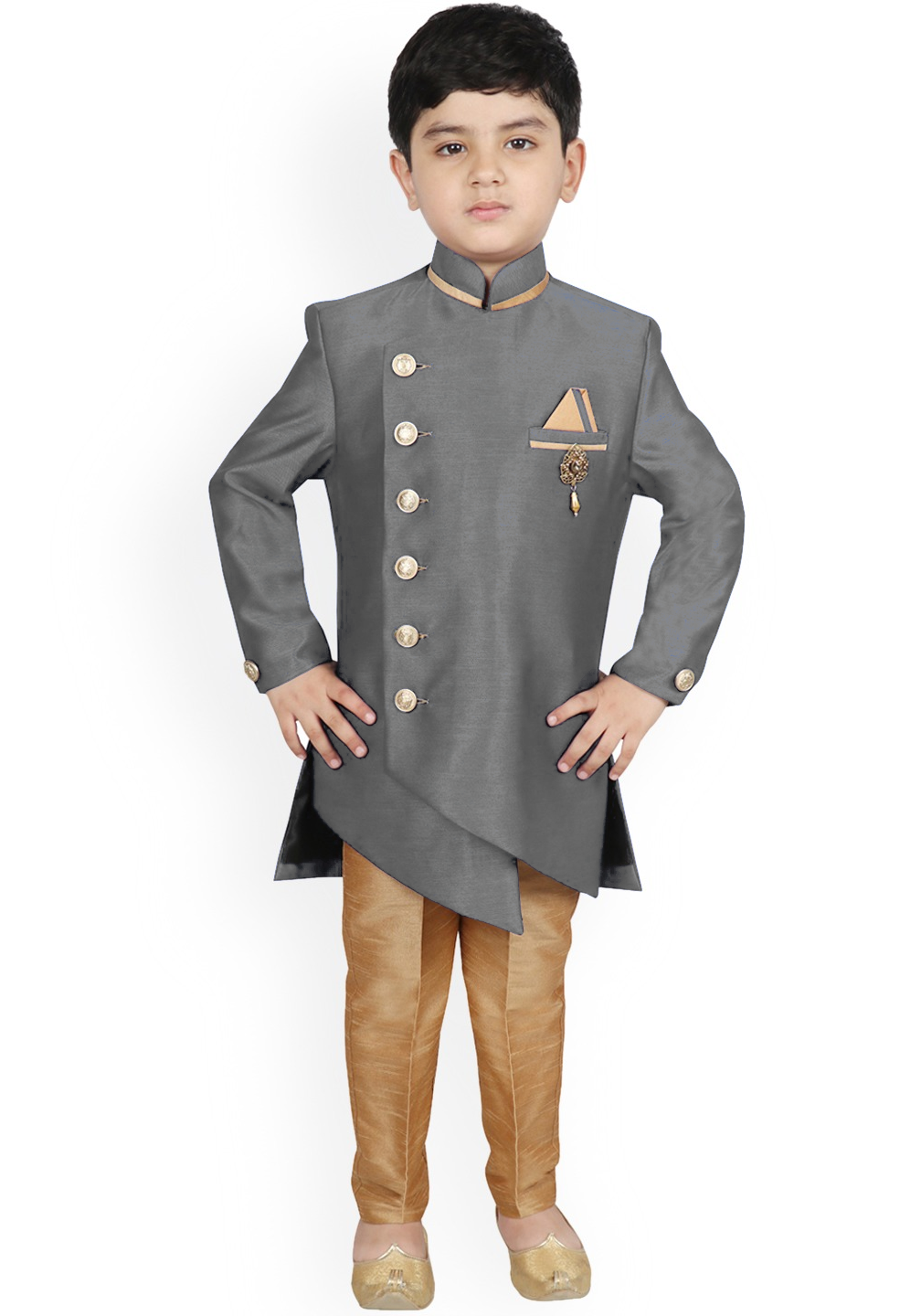 Buy Splendid Silk Grey Kids Kurta Pyjama online.