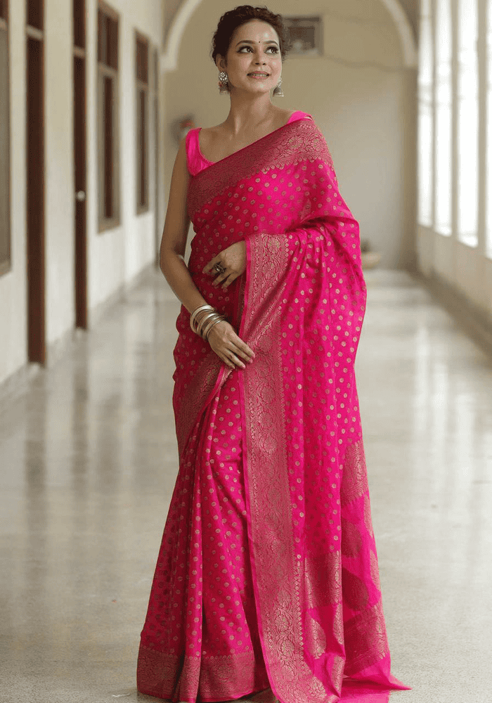 In Pre-stitched saree you will get the saree with stitched plates, belt on the waist and adjustable hooks. So you can wear the saree like a skirt