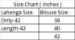 Blouse shown in the product image has the size 40 inch.