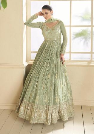 Buy Statuesque Chiffon Dark Sea Green Party Wear Gown online.