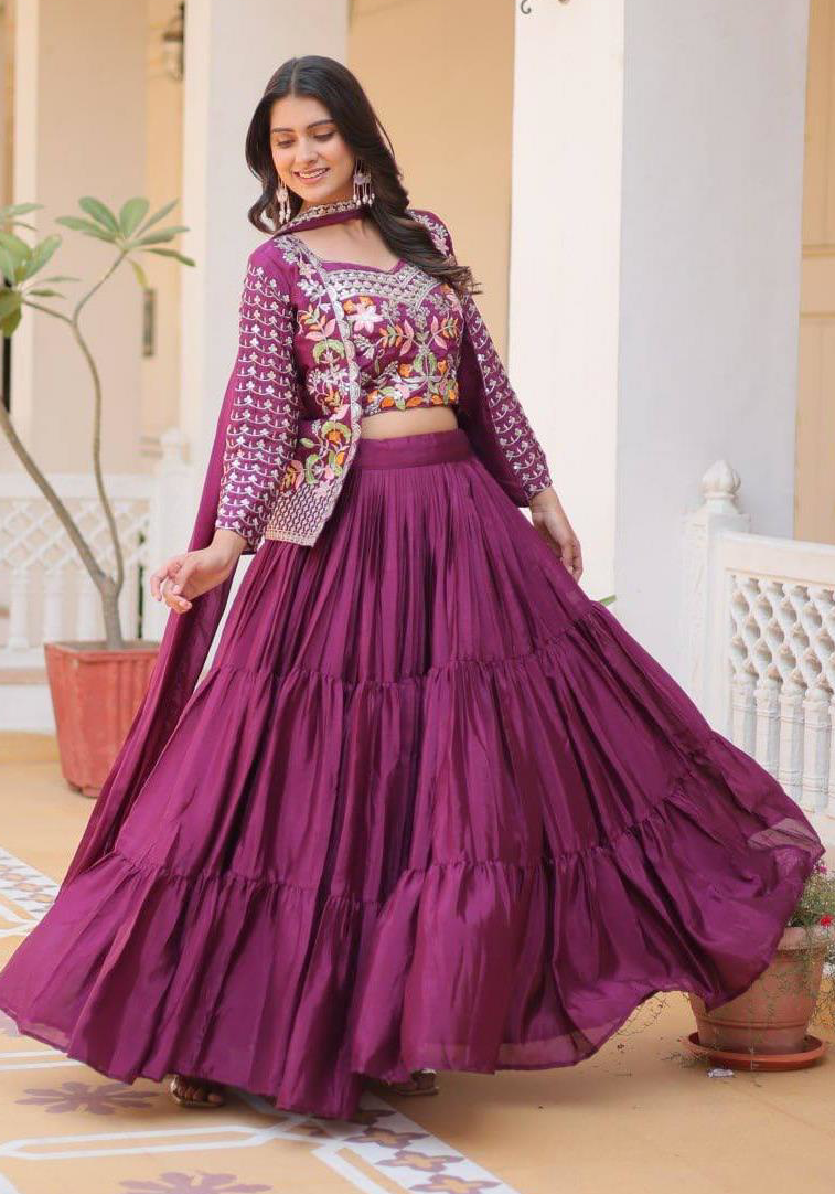Buy Statuesque Chiffon Purple Readymade Lehenga Choli online.