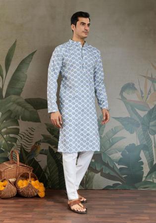 Picture of Statuesque Cotton Light Steel Blue Kurtas
