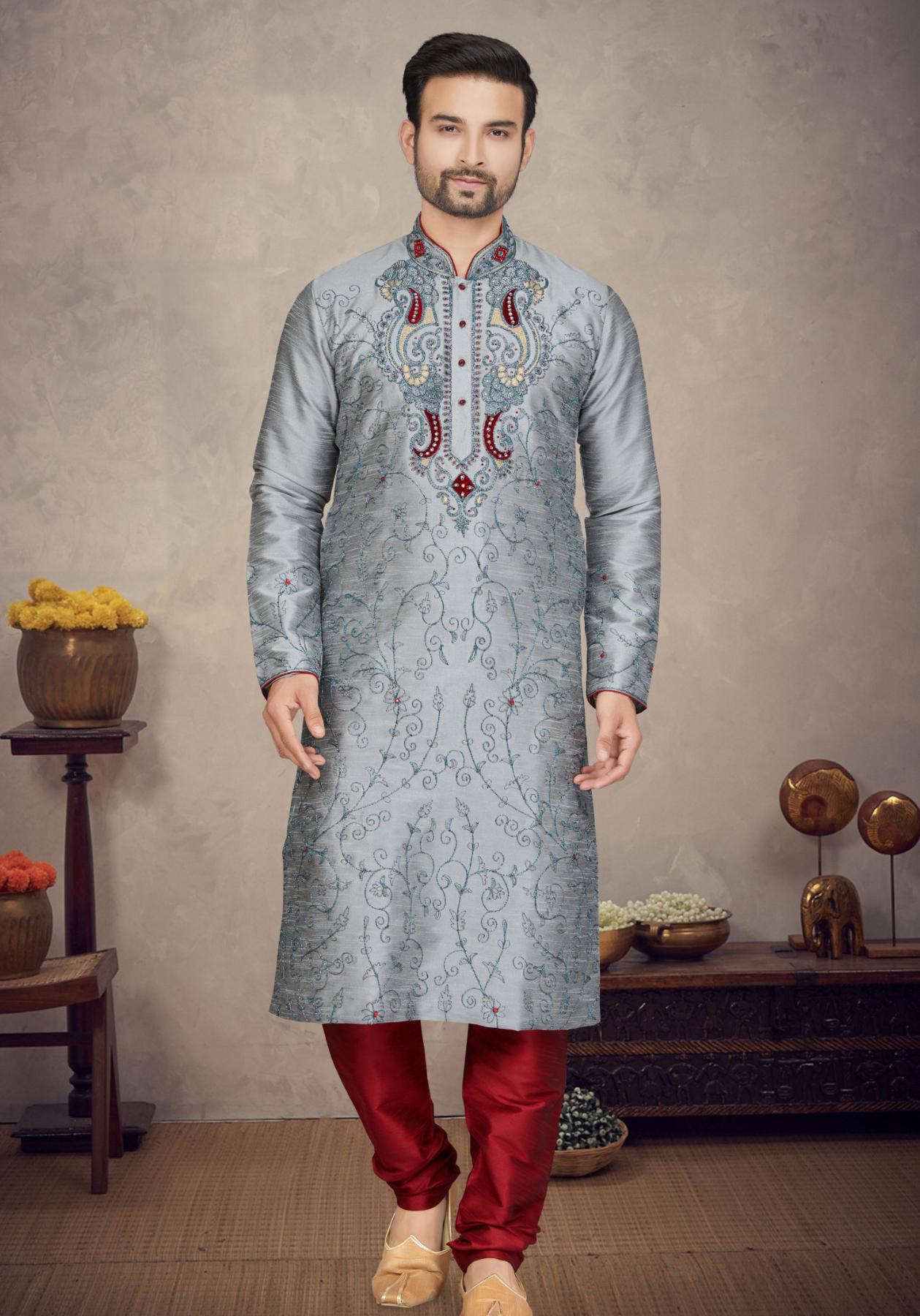 Picture of Statuesque Cotton & Silk Light Slate Grey Kurtas Picture of Statuesque Cotton & Silk Light Slate Grey Kurtas
