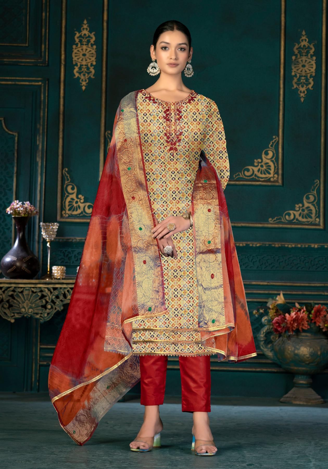 Normally size is measured between the underarm stitching lines from the stressed kameez.
