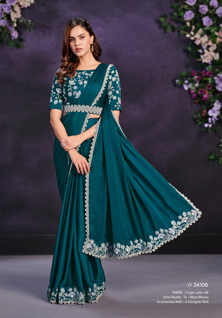 Buy Statuesque Crepe & Satin & Silk Midnight Blue Saree online.