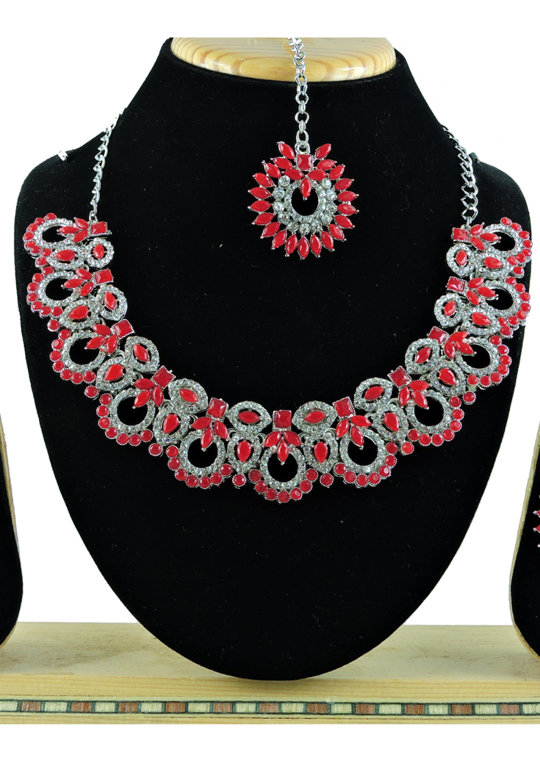 Details: 1 Necklace Set, 2 Earrings, 1 Mang Tikka.