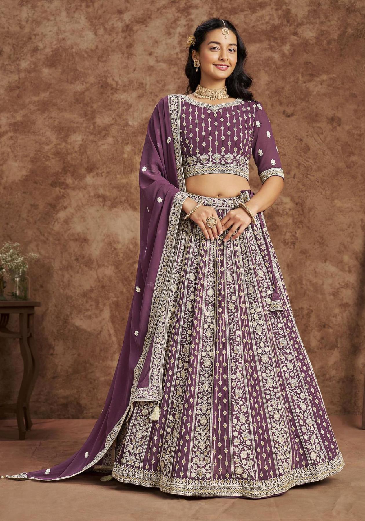 Buy Statuesque Georgette Purple Lehenga Choli online.