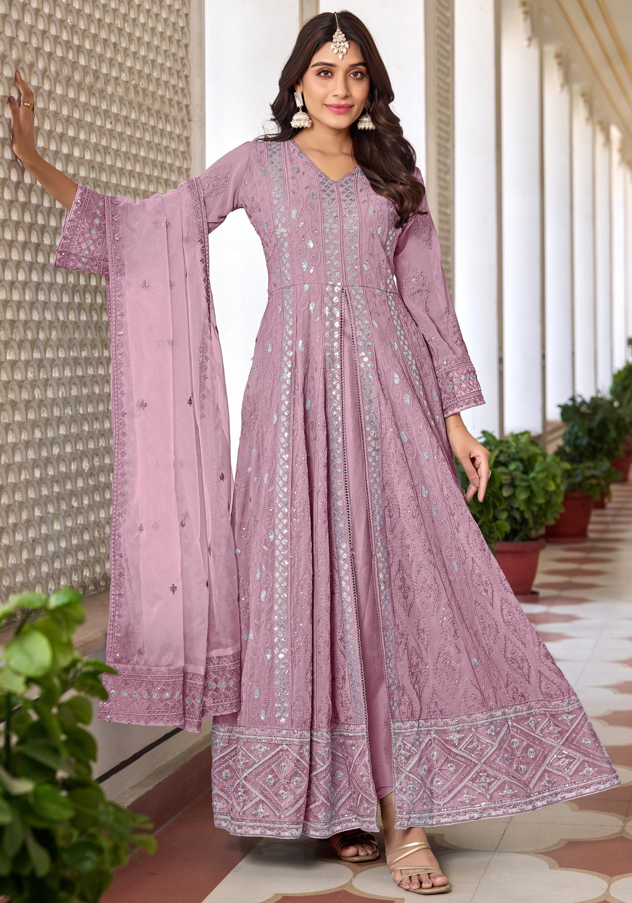 Buy Statuesque Georgette Rosy Brown Anarkali Salwar Kameez online.
