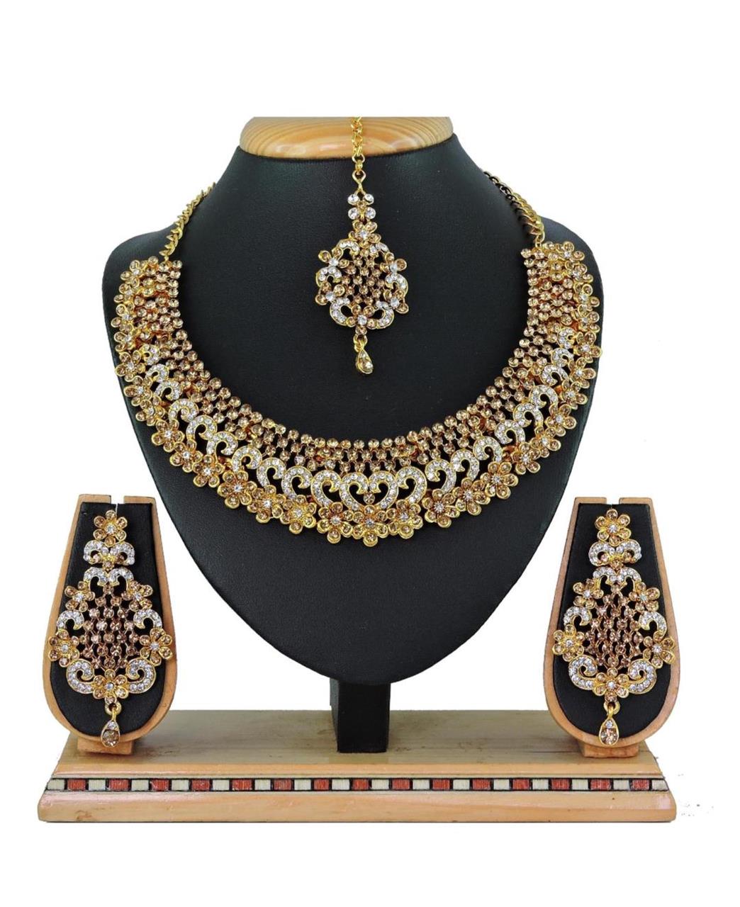 Buy Statuesque Glod & White Necklace Set Jewellery Neckless For Women