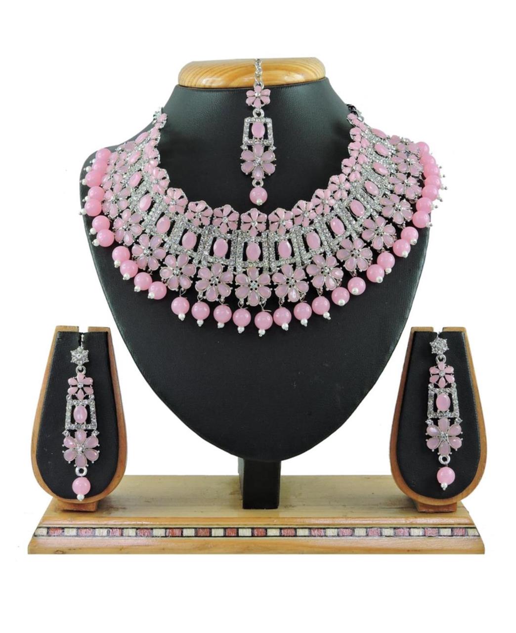 Buy Statuesque Light Pink Necklace Set Jewellery Neckless For Women