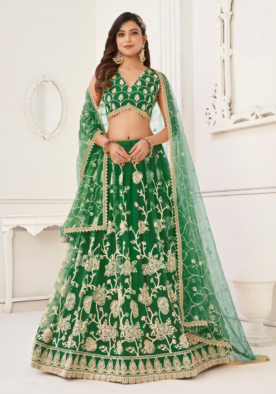 Buy Statuesque Net Forest Green Lehenga Choli online.